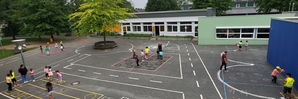 Leg i farvede zoner i skolegården.