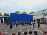 Piektdienas rītā visi Mārtiņa Lutera skolas skolēni un darbinieki pulcējās skolas laukumā, lai veidotu rindas. Tajā rītā Grabes kundze tika paņemta no mājām ar velosipēdu, un visi skolas pagalmā viņu sagaidīja pēdējā dienā skolā. Bija brīnišķīga atmosfēra, pilna smaidošu seju, un jau no paša rīta tika izlieta kāda asara. Pēc tam Grabes kundze paspēja atvadīties no skolēniem un visus cienāja ar gardu saldējumu. Mēs vēlamies izmantot šo iespēju un novēlēt Grabes kundzei visu to labāko nākotnē.