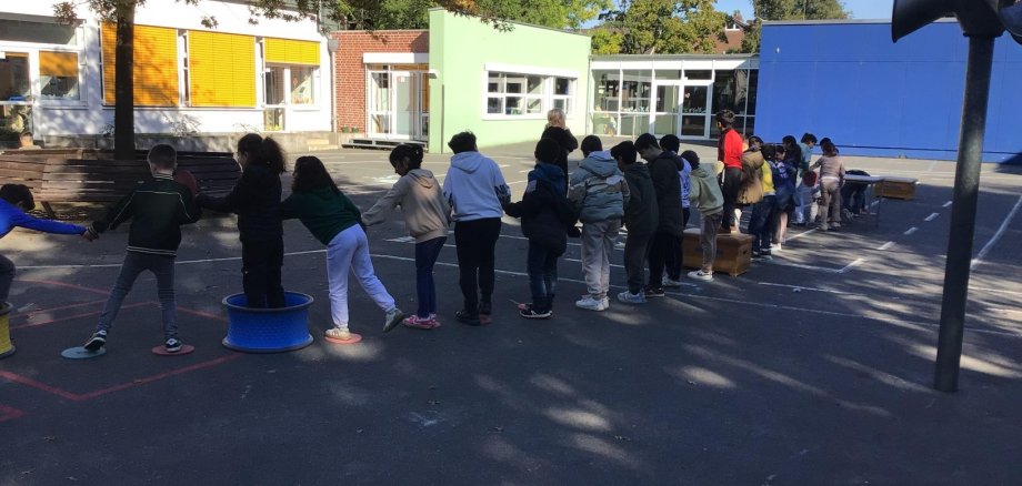 La prima și a doua lecție au luat parte la activitate elevii de 4b, iar la a treia și a patra lecție elevii de 4a. Tema acestei activități a fost munca în echipă. Activitatea a început cu un joc de echipă. Elevii au lucrat apoi împreună pentru a se gândi la ce înseamnă munca în echipă. După această unitate, a început al 2-lea joc. Elevii au trebuit să finalizeze un curs în echipă, fără să se lase unul de altul. Cursul a fost stăpânit cu succes, cu multă distracție. După o scurtă reflecție asupra jocului, a început ultimul joc "Fangemeinde". Doi copii la un moment dat joacă "Schnick, Schnack, Schnuck". Copilul care pierde runda se aliniază în spatele câștigătorului și devine "fanul" acestuia. Fanul își poate susține acum cu voce tare vedeta atunci când joacă împotriva următorului copil. În final, două "comunități de fani" se întâlnesc. Atmosfera a fost foarte bună, iar fanii și-au susținut cu voce tare vedeta. A fost un final grozav pentru proiect.